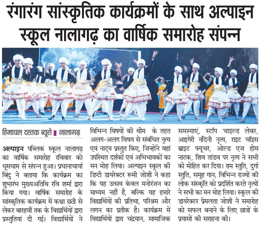 Alpine Public School Nalagarh, Annual Function Concludes with Colourful Cultural Programmes